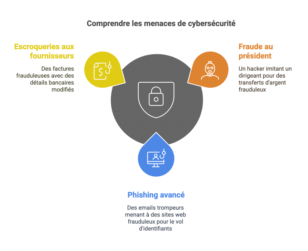 🔹 Escroqueries aux fournisseurs : Des factures frauduleuses sont envoyées avec des coordonnées bancaires modifiées.